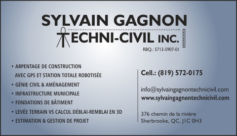 SYLVAIN GAGNON TECHNI-CIVIL INC | Hébergement et Réalisation : Optilog Informatique inc. | Construction411.com